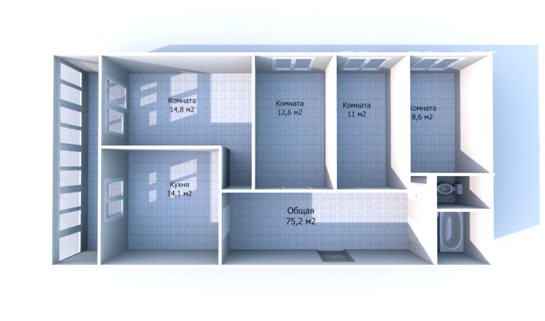 Продается просторная 4-х комнатная квартира, по адресу: МО, г. Подольск, ул. Сосновая, д.2 к.3. Квартира расположена на 12 этаже 14 этажного дома 1989 года постройки. Площадь квартиры 75,2 м2 (с лоджией 78,5 м2), жилая площадь 47 (14,8/12,6/11/8,6) м2, комнаты изолированные, большая кухня 14,1 м2, СУ раздельный. Огромная лоджия вдоль кухни и комнаты. В квартире сделан косметический ремонт.