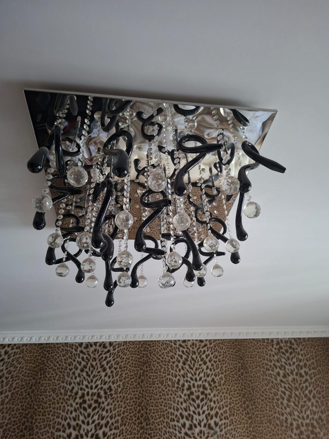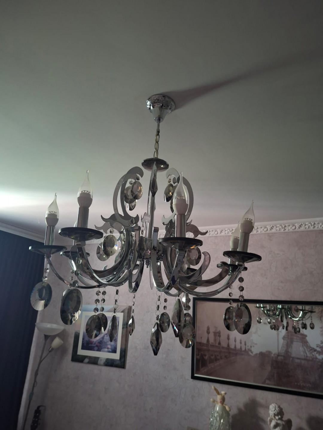 - Дорогие люстры в каждой комнате, стильные шторы, красивое оформление — в некоторых комнатах остаются ковры.
