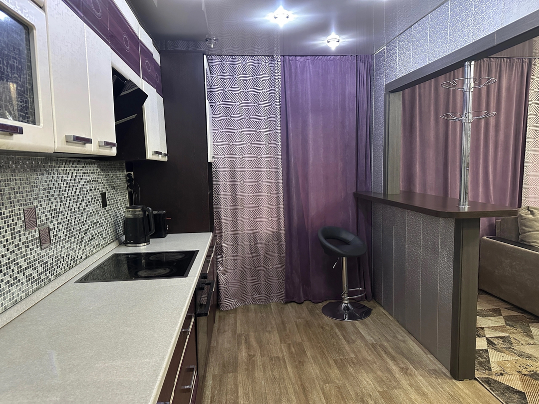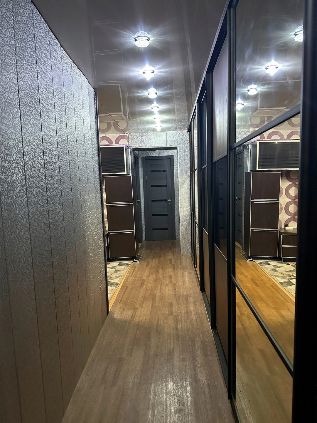 Мебель: Встроенный зеркальный шкаф во всю длину коридора и барная стойка в зале остаются новым владельцам.