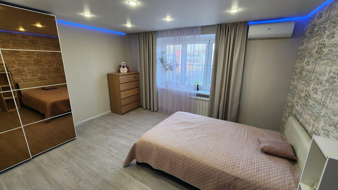 В квартире сделан свежий ремонт в 2023 году. В каждой комнате на полу постелен ламинат. В ванной и туалете кафель, на кухне линолеум. Сантехника исправна, ничего не течет. В начале 2025 года полностью сделана электрика. В 2024-2025 монтирован подвесной потолок. Перепланировок не было, проблем с переоформлением не возникнет. Продажа от собственника. Прописан один человек (собственник).