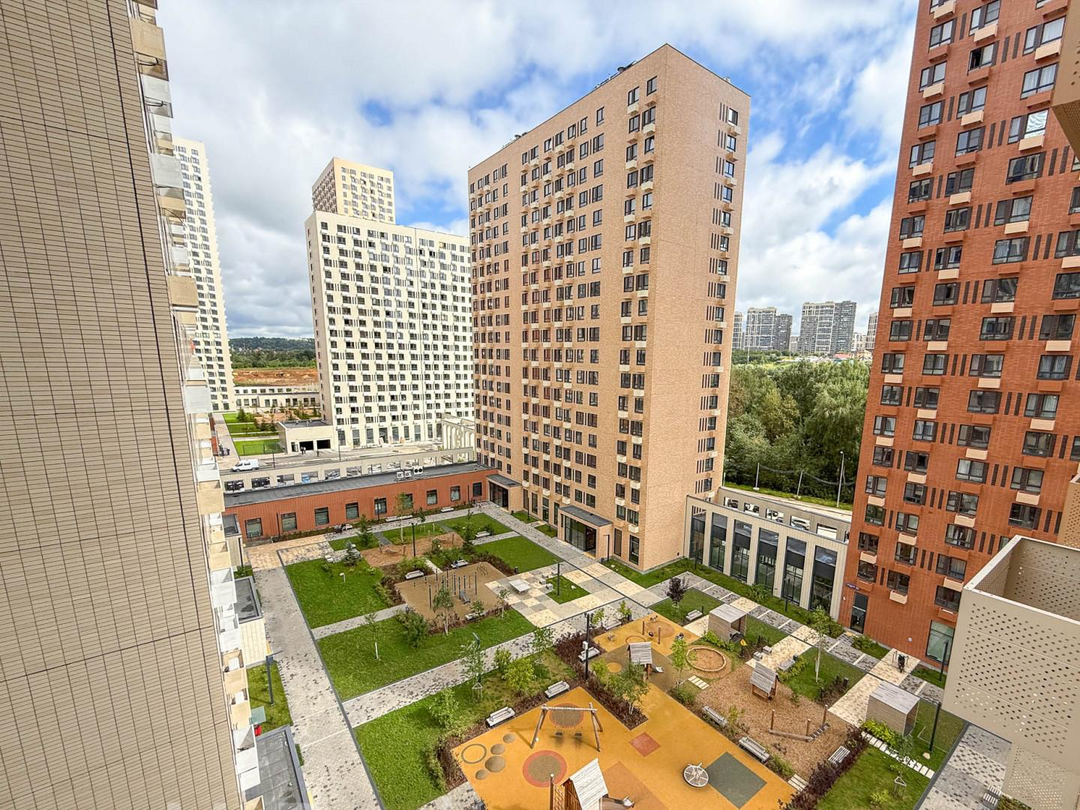 Окна выходят во внутренний двор - тихо, безопасно, хороший обзор на благоустроенную территорию.