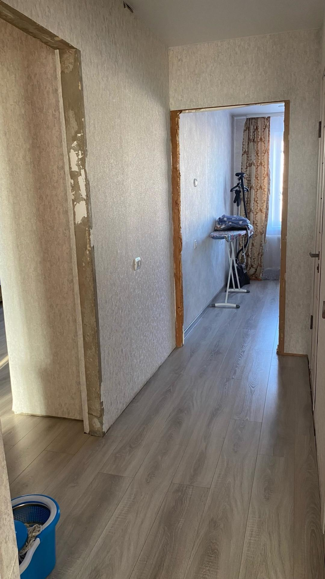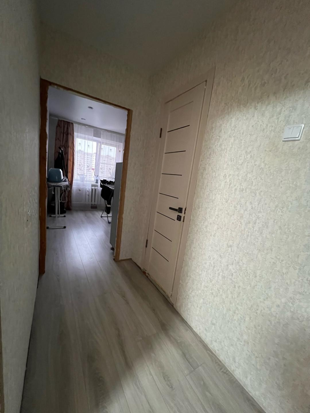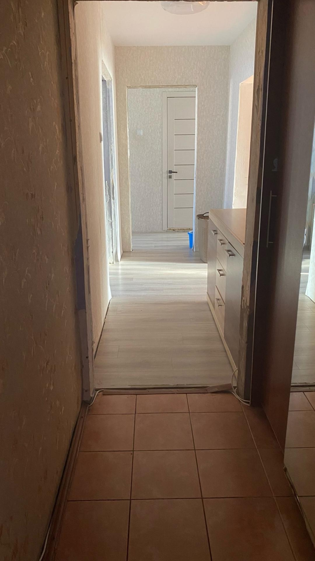 Большой длинный коридор с раздельными комнатами и раздельный сан узел.