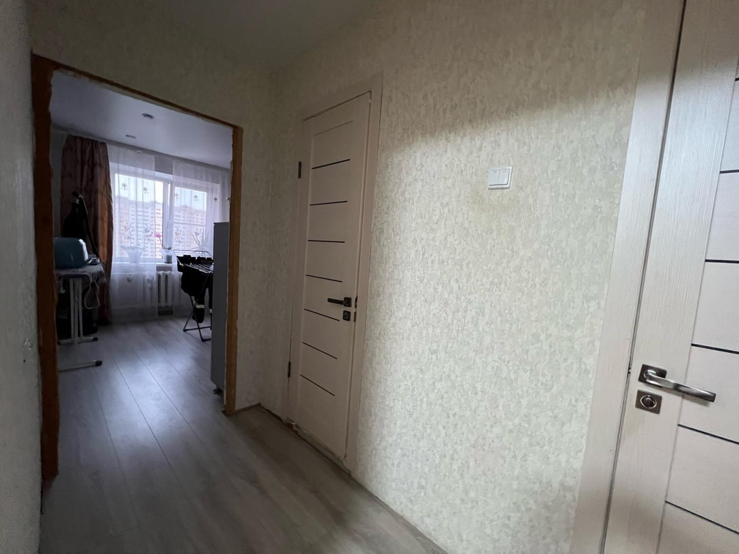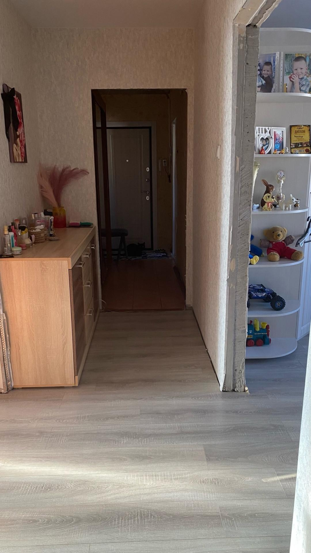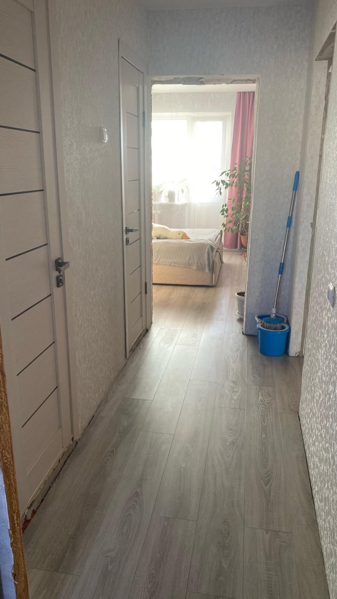 Большой длинный коридор с раздельными комнатами и раздельный сан узел.