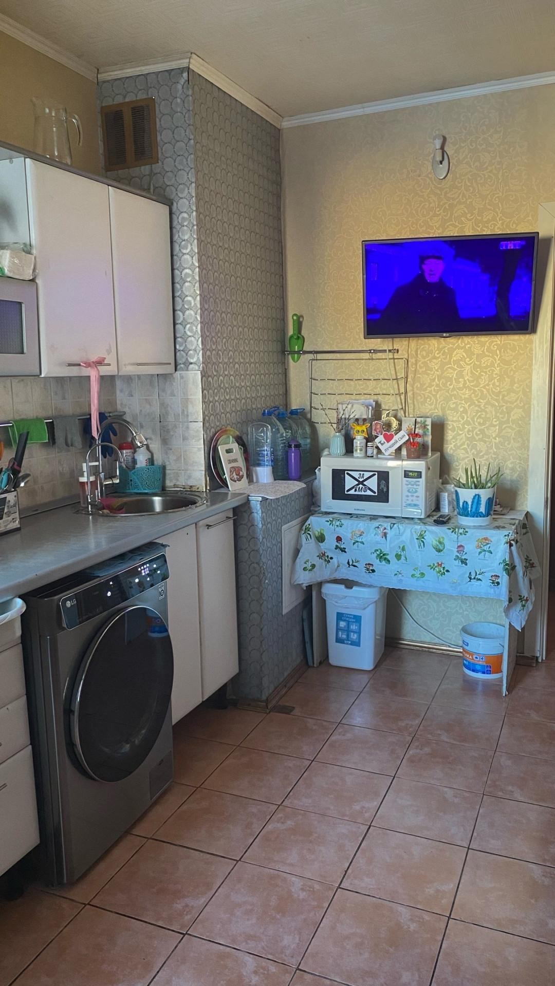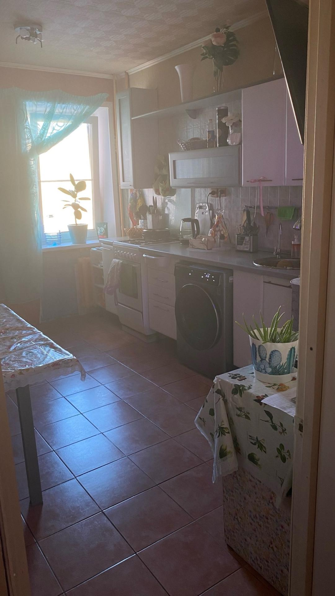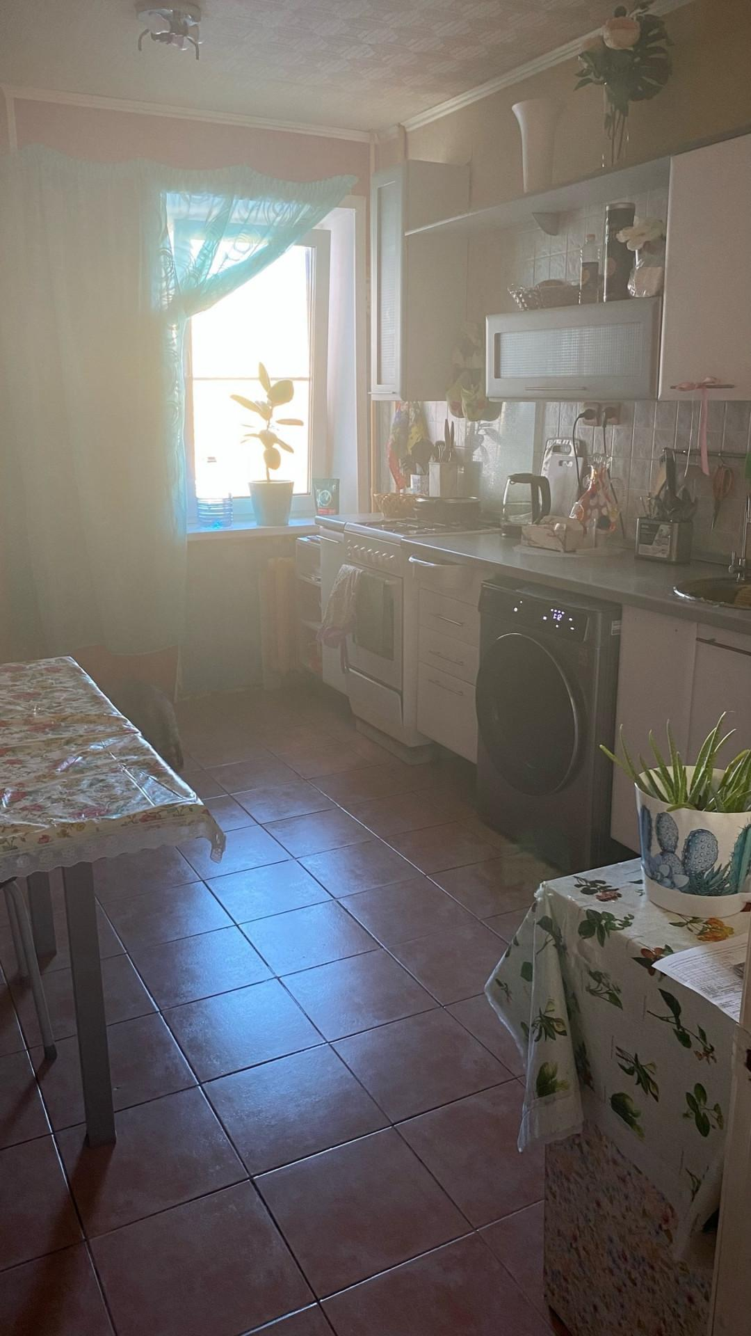 Большая кухня,пол кафель окна пвх,кухонный гарнитур остается для Вас.