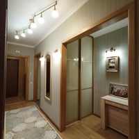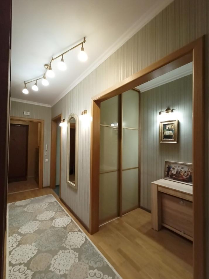 Особое преимущество — это удобная планировка-распашонка: окна выходят на две стороны, обеспечивая прекрасное естественное освещение и хорошую циркуляцию воздуха. При этом двор очень тихий, что гарантирует спокойствие и комфорт. У квартиры есть собственный тамбур, который закрывается на замок, что обеспечивает дополнительный комфорт, шумоизоляцию и тепло. Продумано и место для хранения: в коридоре расположены два больших шкафа-купе и еще один дополнительный шкаф, что позволяет с легкостью разместить все необходимые вещи. Дополнительное преимущество — две застекленные лоджии, которые можно использовать как зоны отдыха или дополнительные места для хранения, а также для сушки белья.