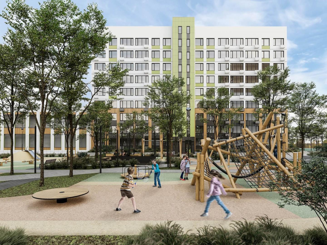 Во дворе установлены современные горки, качели, лазалки и песочницы - всё, что нужно для активных игр и развития маленьких жителей. Площадка расположена на закрытой и безопасной территории. Так же оборудованы зоны для занятий спортом.
