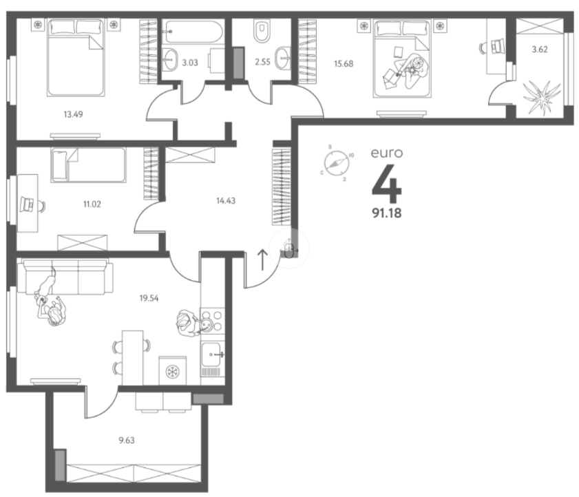 Продаётся ШИКАРНАЯ 4-х комнатная квартира евро-формата для большой семьи с двумя лоджиями и отдельной гардеробной в КЛАССНОМ комплексе класса Комфорт.