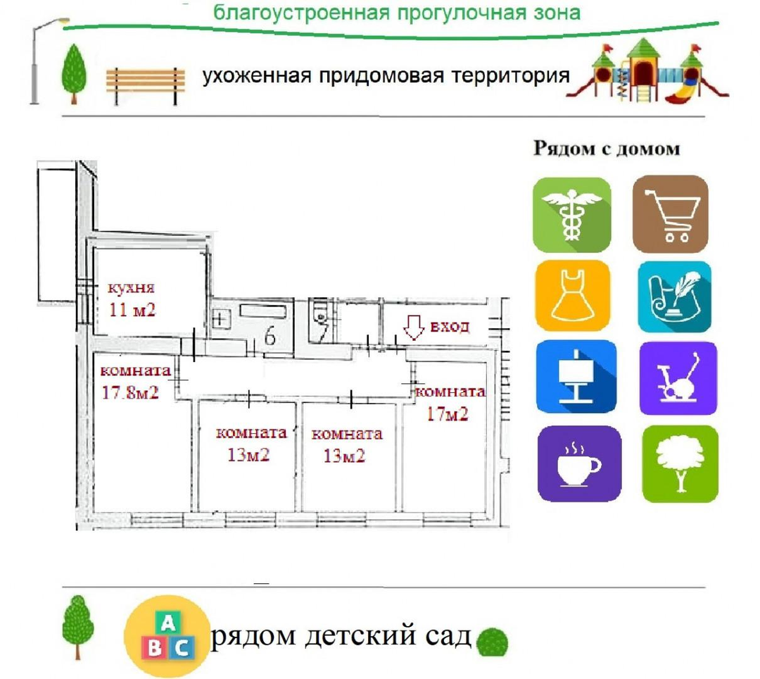 * 7 мин. пешком пять детских садов