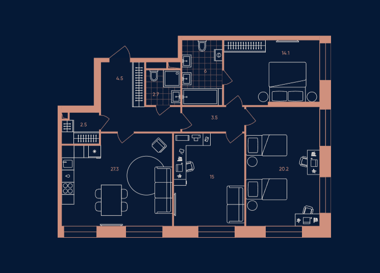 * 2–3 спальни