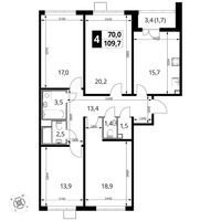4-к. квартира, 109 м²