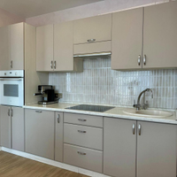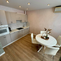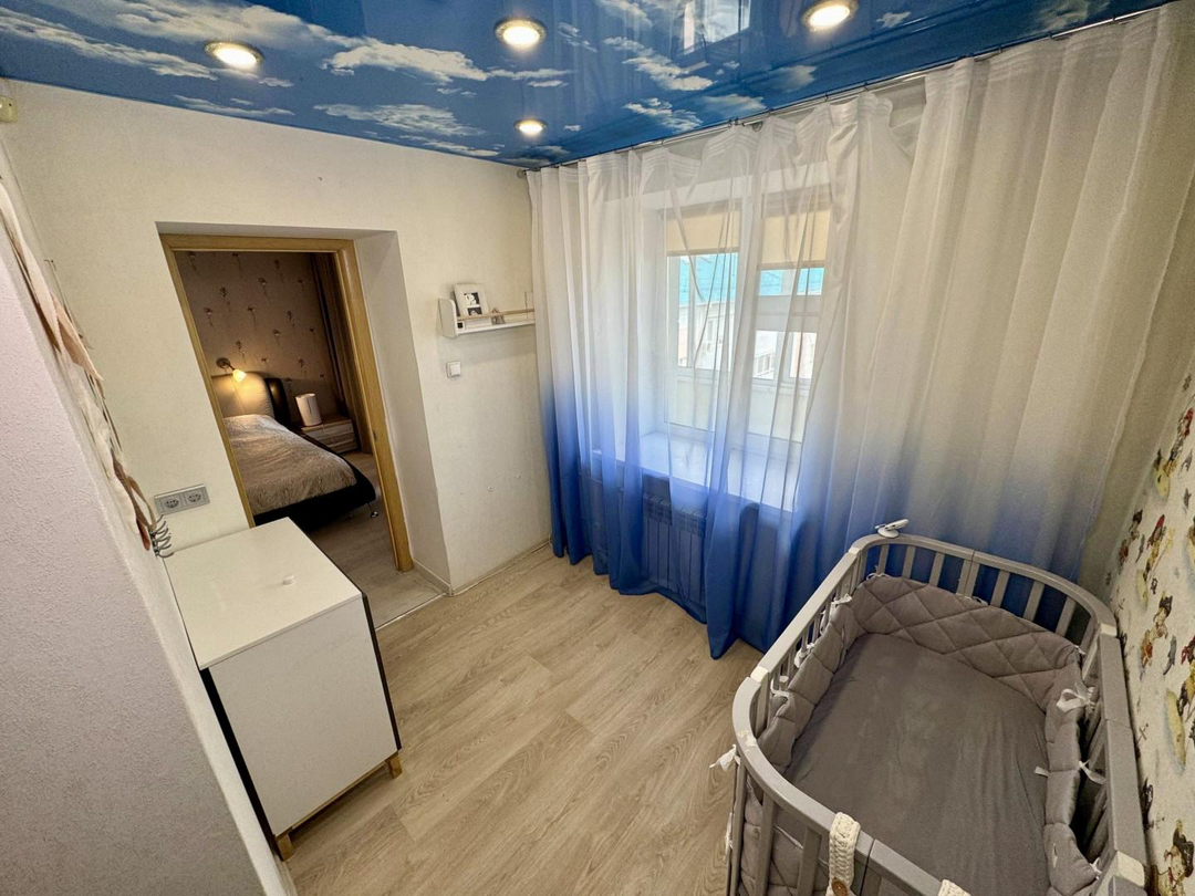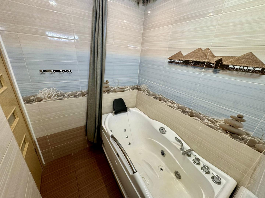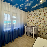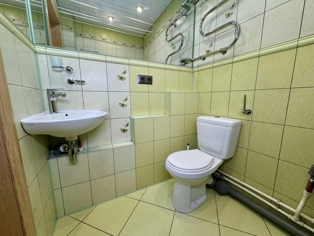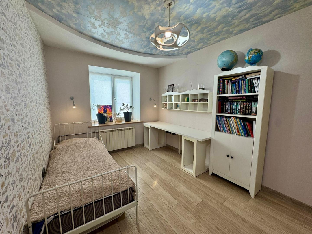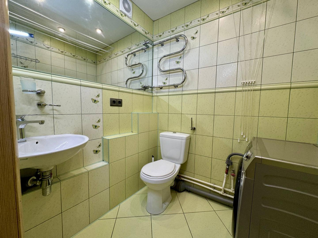 В квартире выполнен полностью капитальный ремонт: заменены трубы отопления, проводка и все коммуникации, установлены счетчики. Напольное покрытие — паркет и керамогранит. Натяжные потолки, пластиковые окна.