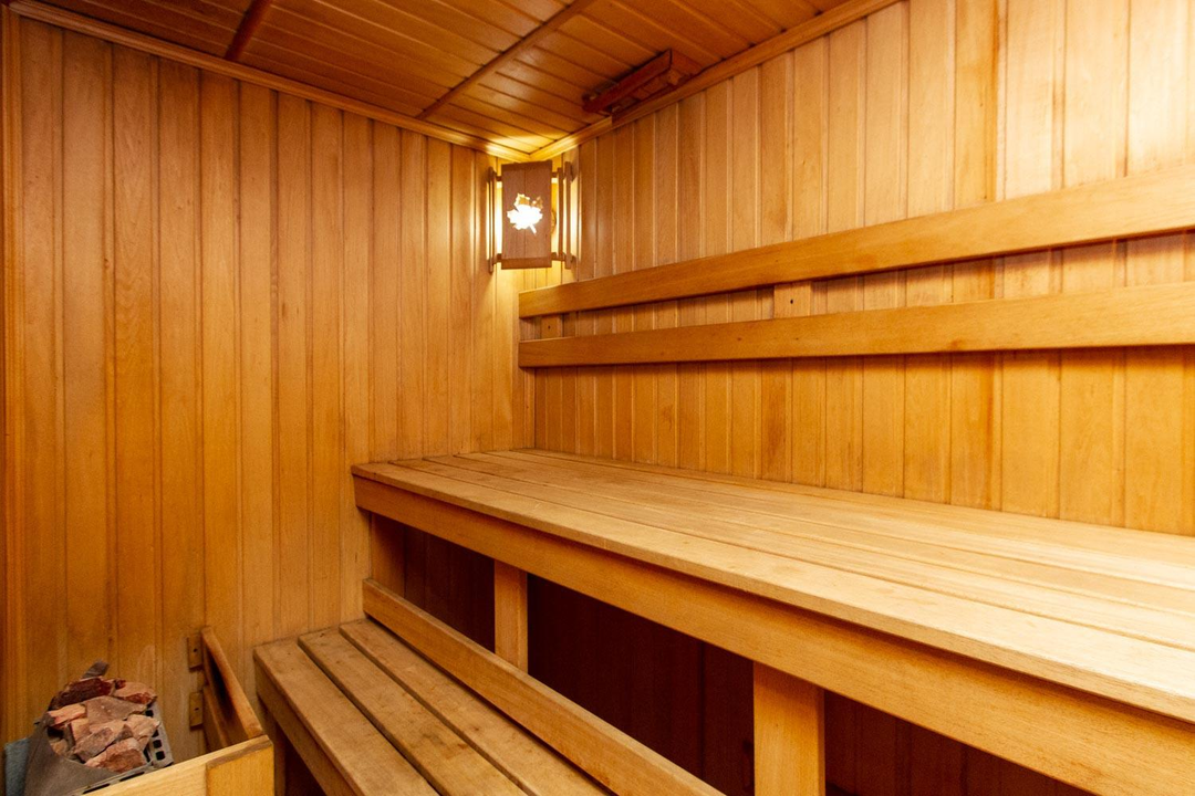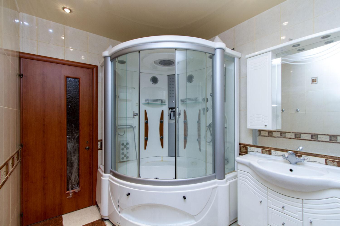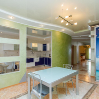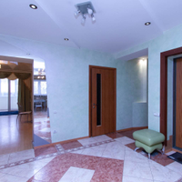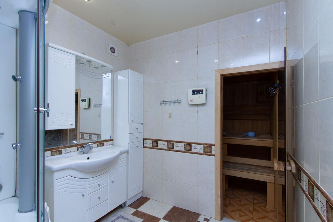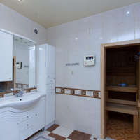 В квартире 5 комнат и 3 санузла, один из них с выходом в сауну. Установлен электрокамин, при желании можно сделать дровяной (есть дымоход). На входе надежная сейфовая дверь, установлены сигнализация и тревожная кнопка.