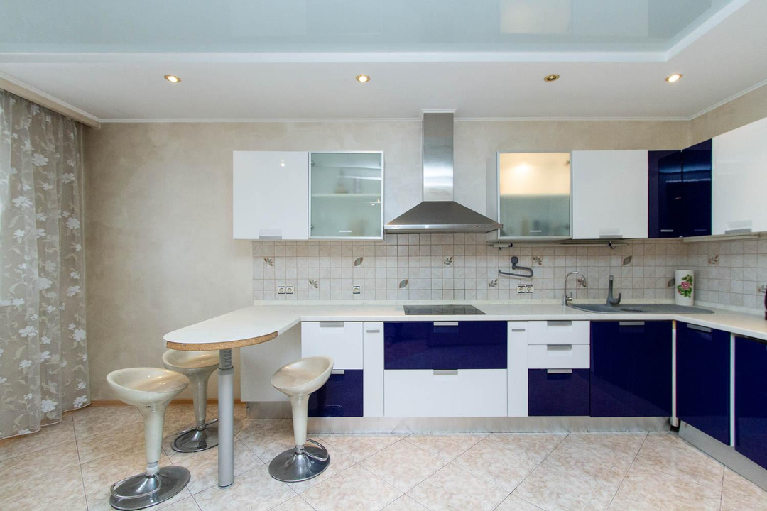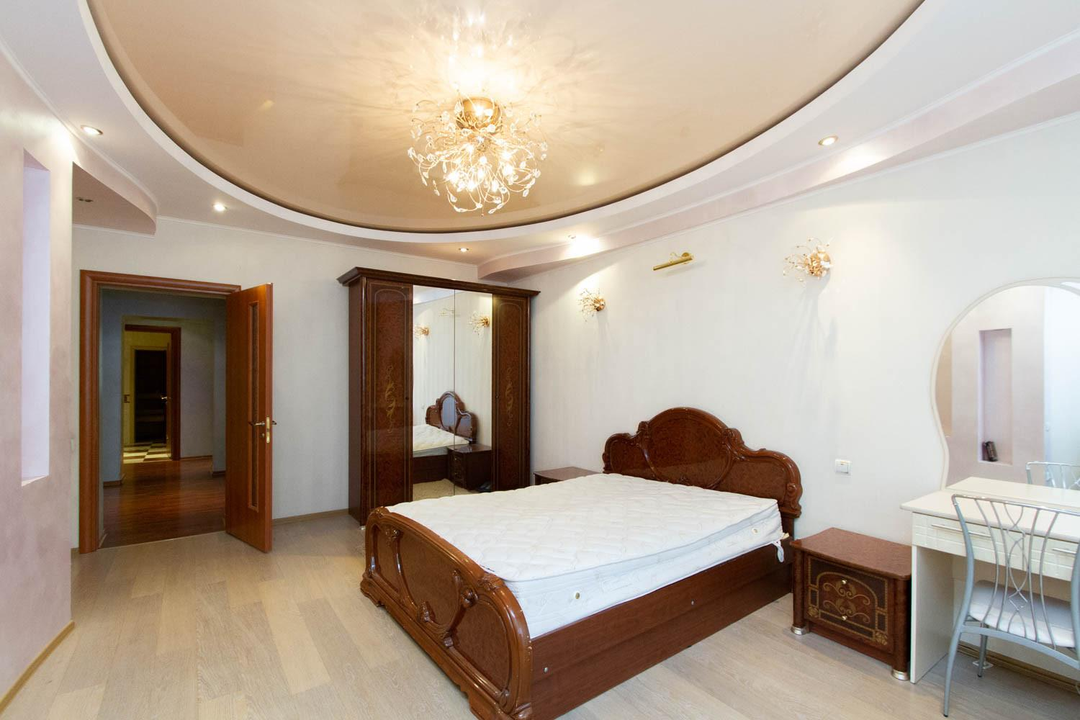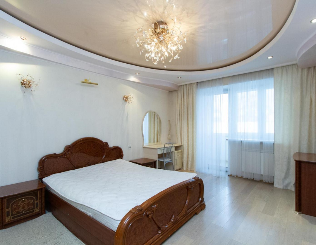 Отделка: ламинат и плитка на полу, ровные стены (обои и венецианская штукатурка), натяжные потолки. Радиаторы алюминиевые, стояки медные. В квартире остается вся мебель и техника, как на фото.