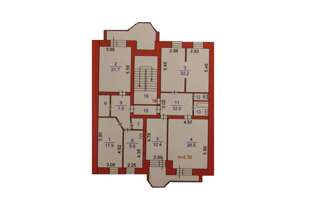 Квартира получена путем объединения 3- и 2-комнатной квартир, поэтому на площадке одна входная дверь. Высота потолков 2,85 м, ощущается много пространства и света.
