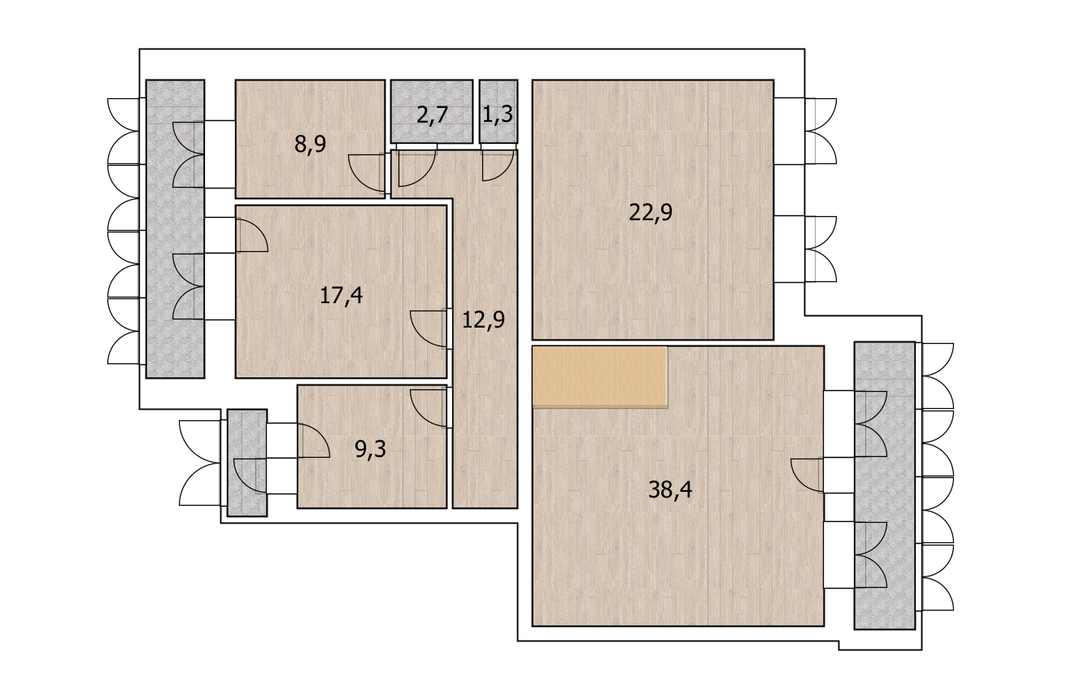 Пятикомнатная квартира, расположенная по адресу: ул. Муксинова, д. 2/1, 10/11 этажность. Общая площадь 159 м2.