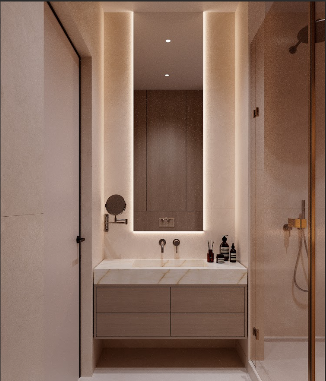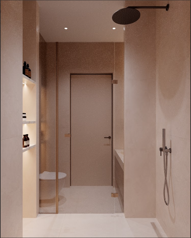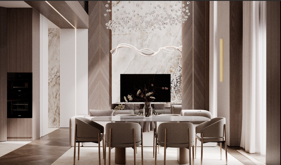 Планировка включает четыре изолированные комнаты, кухню-гостиную площадью 30,9 кв. м и пять санузлов .