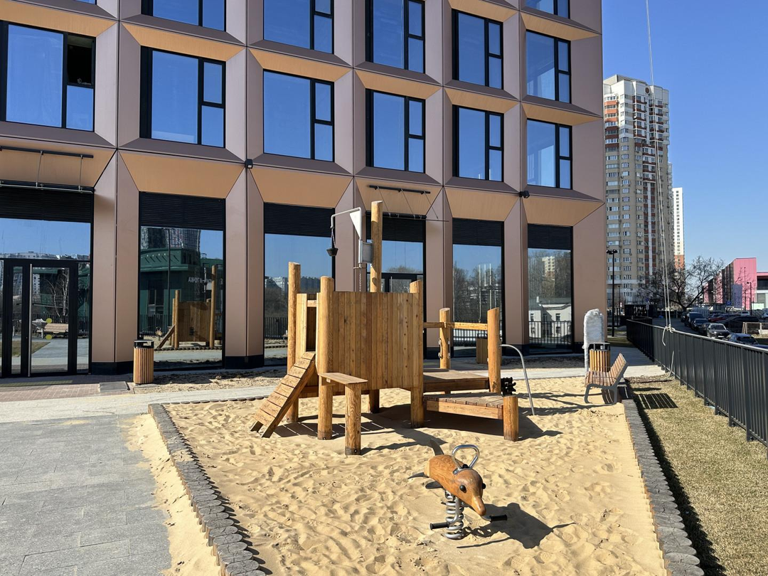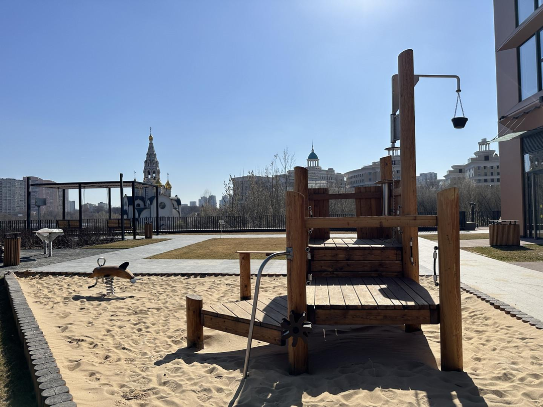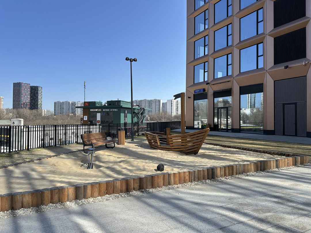 Четыре гектара благоустроенной территории , с видовым мостом, зоной кинотеатра, зонами для тихого отдыха, большими спортивными площадками для пляжного волейбола, футбола, настольного тенниса, строятся три детских сада и школа. В окружении множество детских садов.