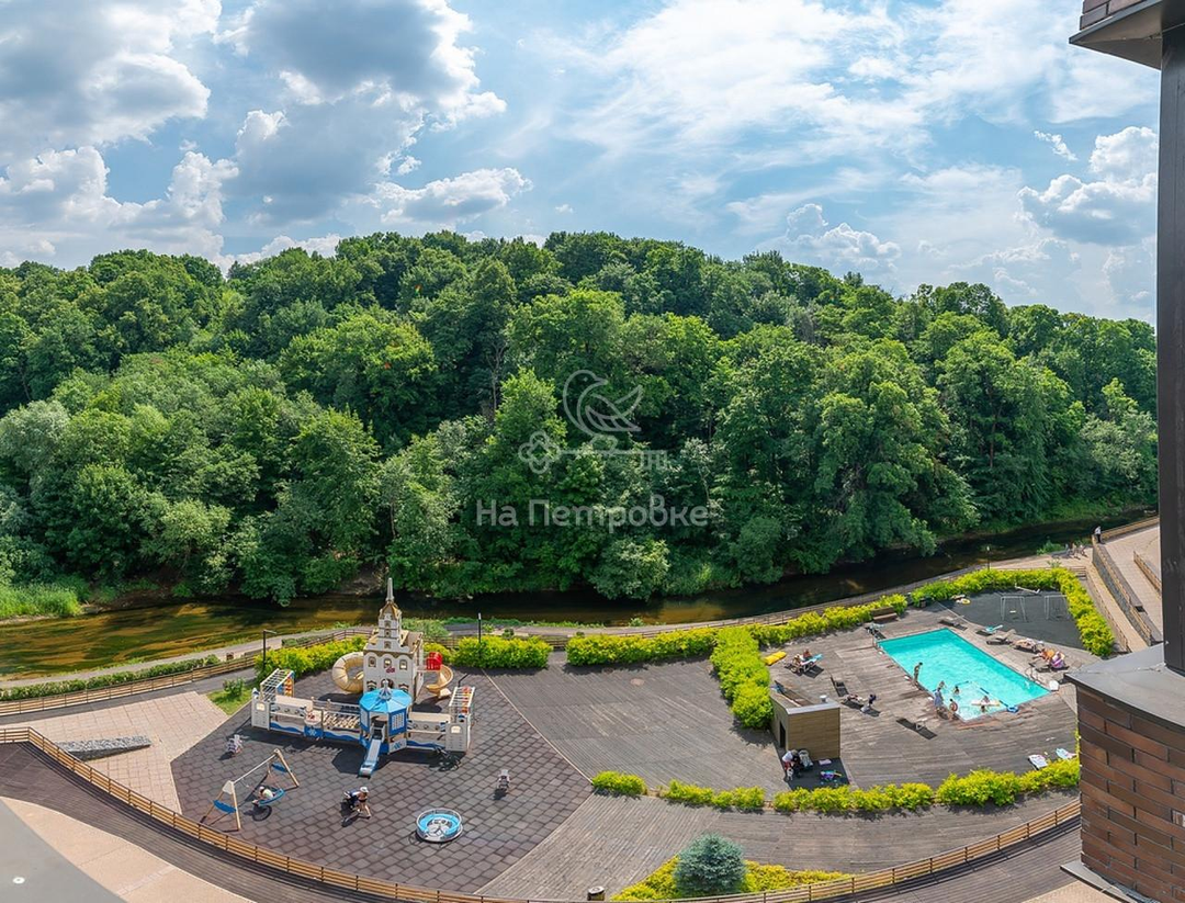 Квартира расположена в самом удобном корпусе. Все окна выходят в сторону леса и реки, во дворе бассейн и зона спорта и отдыха.