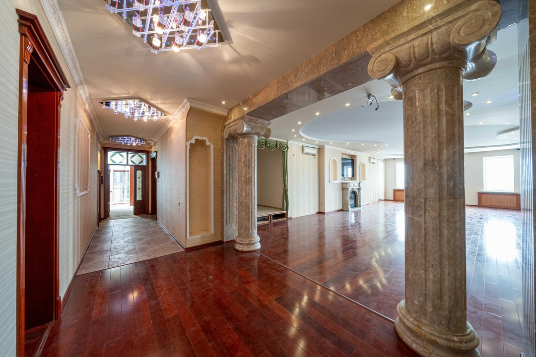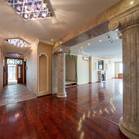 В ремонте применены долговечные материалы, мраморные элементы (камин, колонны, арка, подоконники, декоративные двери из массива), купольный элемент и сценическая площадка придают уникальность и добавляет нотку гармонии и легкости. Небольшие инвестиции в ремонт создадут уникальное пространство на основе уже установленных качественных материалов.