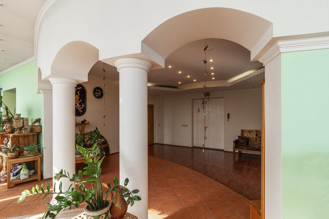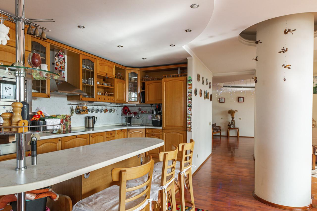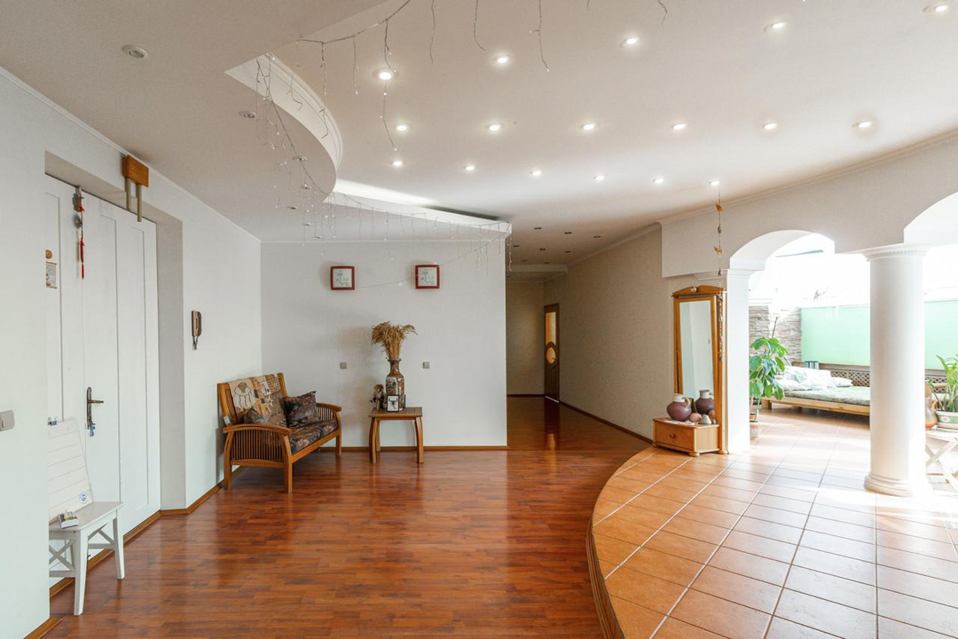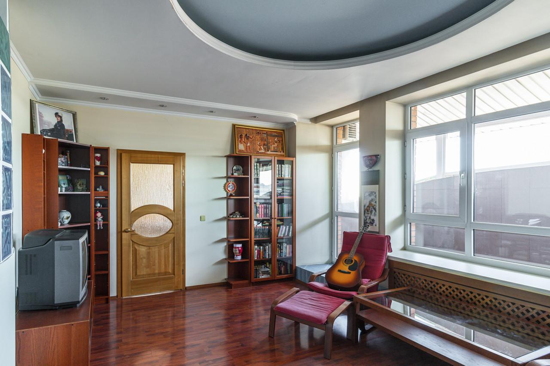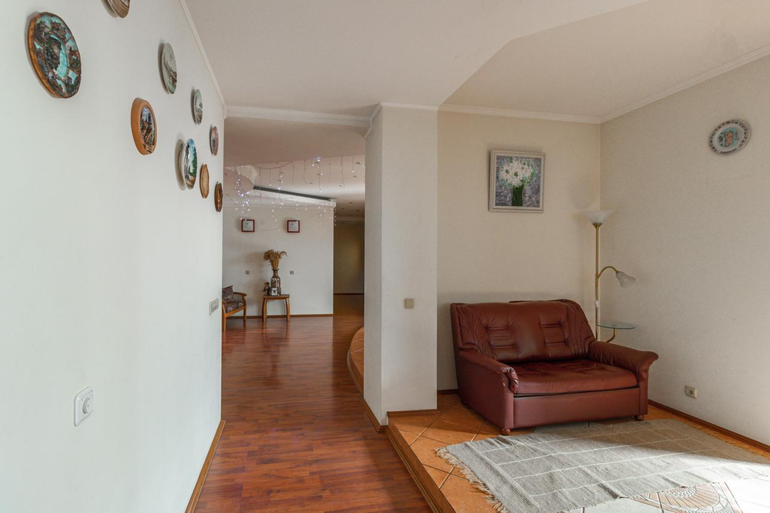3 спальни, холл, столовая с гостиной, комната отдыха, сауна, кабинет, спортивный зал, прачечная и большая гардеробная комната, 2 санузла. Огромная терраса и 2 балкона, вид на весь центр и в то же время, тихая и уютная локация. В пешей доступности исторический центр города.