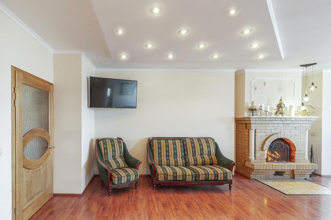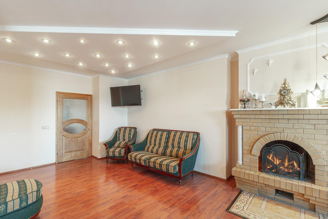 Мало соседей. В доме всего 13 квартир, данная квартира расположена на верхнем этаже и занимает весь этаж. «Живой» камин, тишина и красивый вид из окна сделают уютными Ваши вечера.