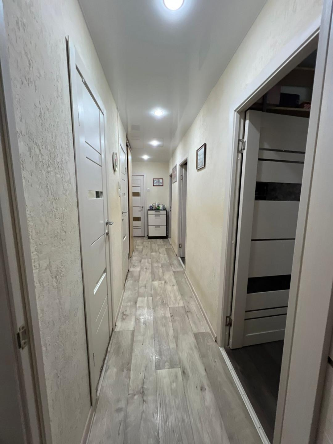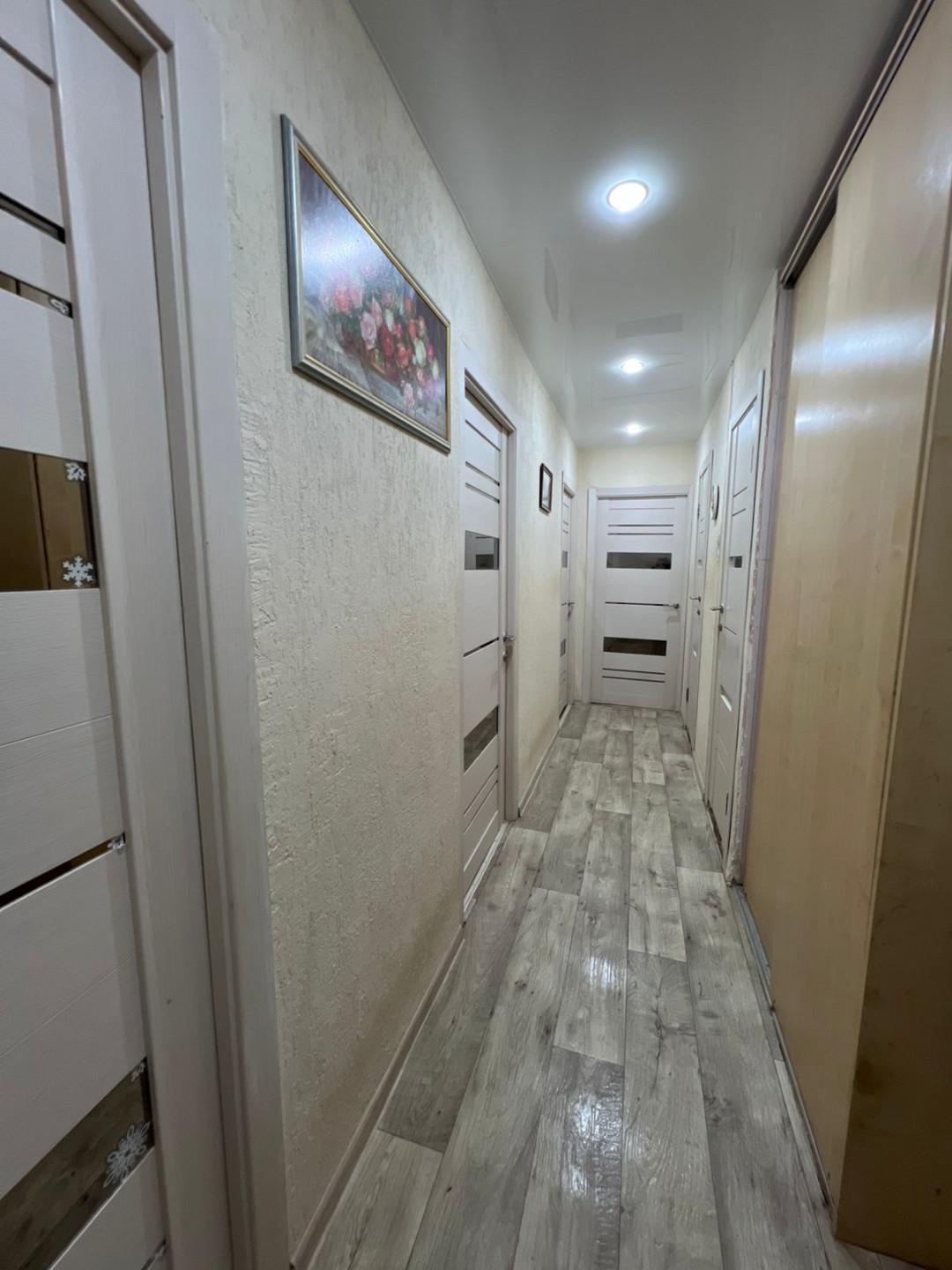 Kваpтиpа cоcтоит из пяти изолированных комнат. В квартире два коридора. Имеется вместительная кладовка, просторная лоджия, санузел раздельный, счётчики на горячую и холодную воду. Канализационная труба в туалете новая (пластик). Окна пластиковые, навесные потолки, пол линолеум (новый) , частично ламинат. Кухонный гарнитур останется новым хозяевам. Окна выходят на три стороны дома. В подъезде косметический ремонт, новые почтовые ящики. Рядом проживают дружелюбные соседи. Возле дома имеются свободные парковочные места.