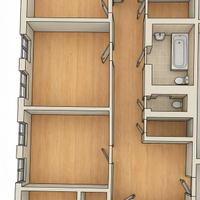 · Окна выходят на север (кухня), на юг (зал и кабинет), на юго-запад (3 комнаты).