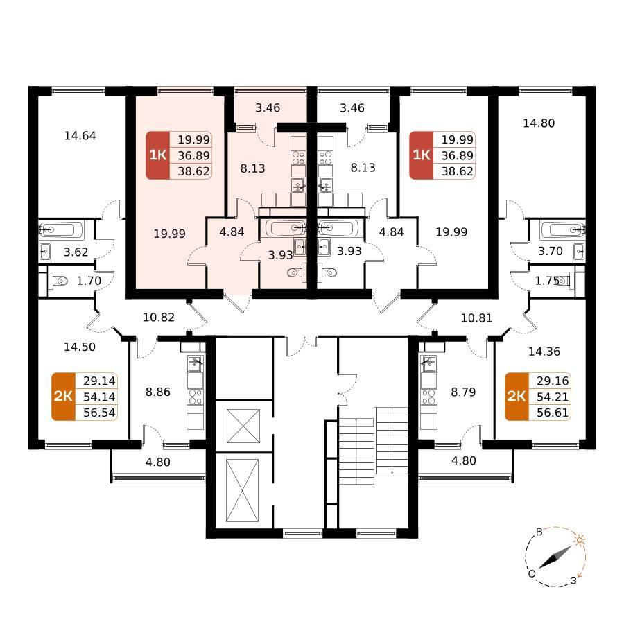 1-к. квартира, 38 м²