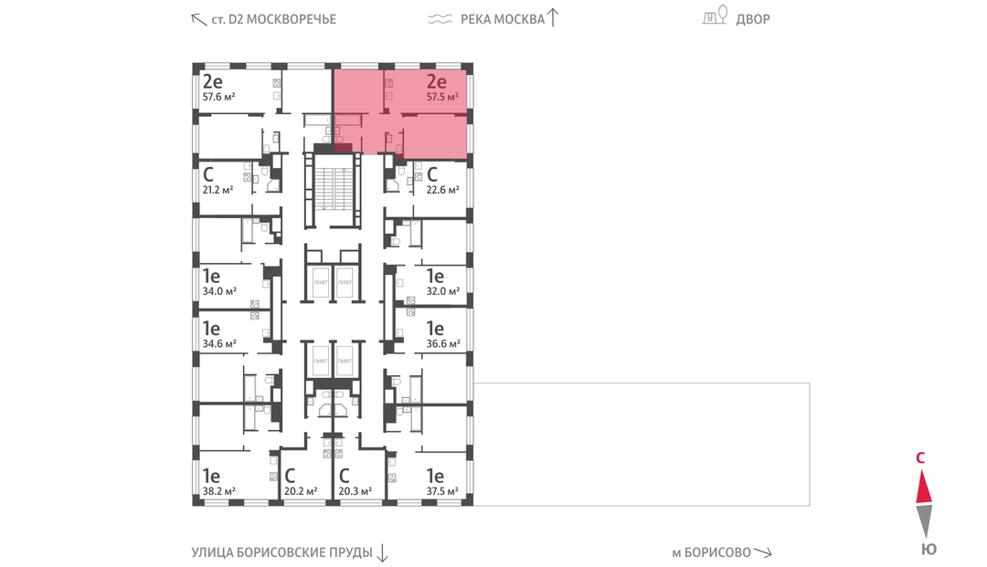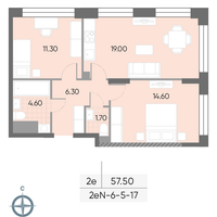 2-к. квартира, 57 м²