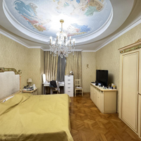 Лепнина на потолке, молдинги, фрески, мозаики, качественный паркет и другие атрибуты изысканного, искусного интерьера.