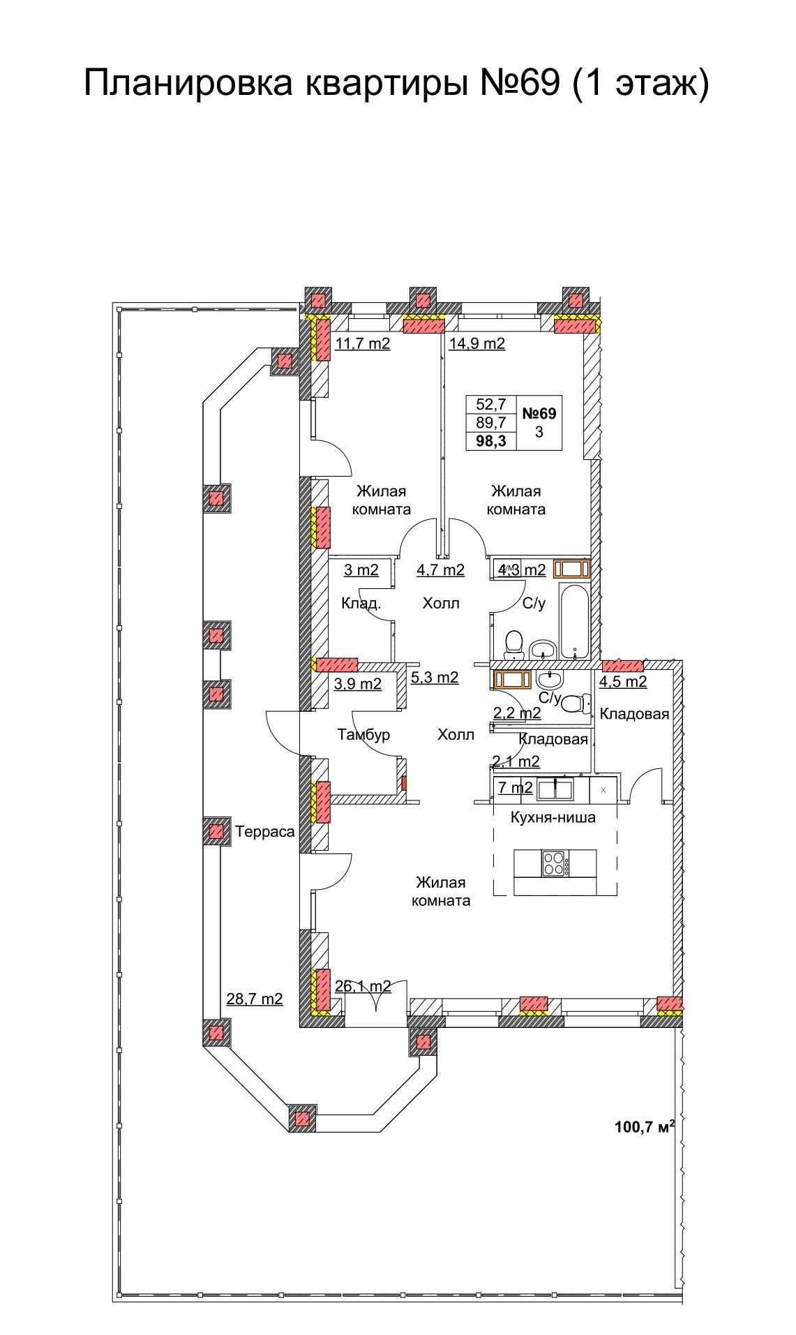 3-к. квартира, 100 м²