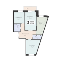 3-к. квартира, 87 м²