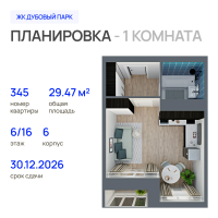 1-к. квартира, 29 м²