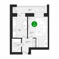 1-к. квартира, 46 м²