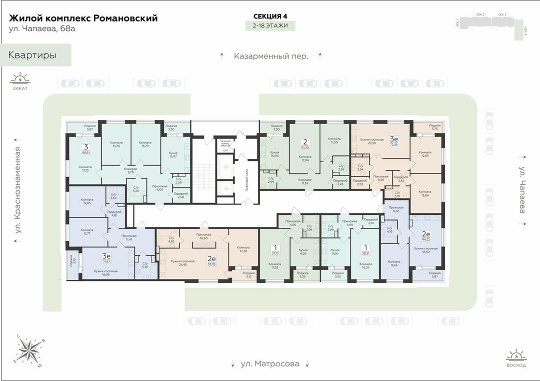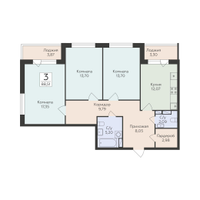 3-к. квартира, 88 м²