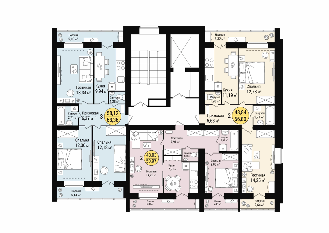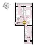 2-к. квартира, 56 м²