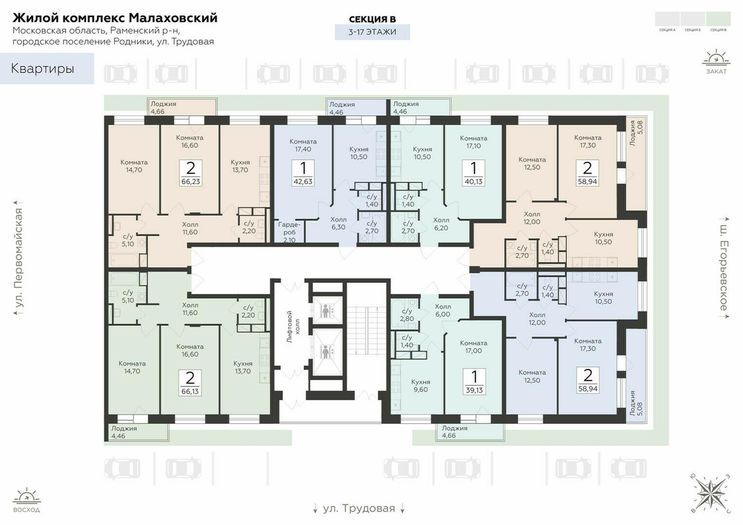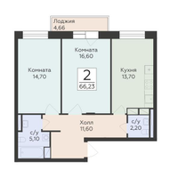 2-к. квартира, 66 м²