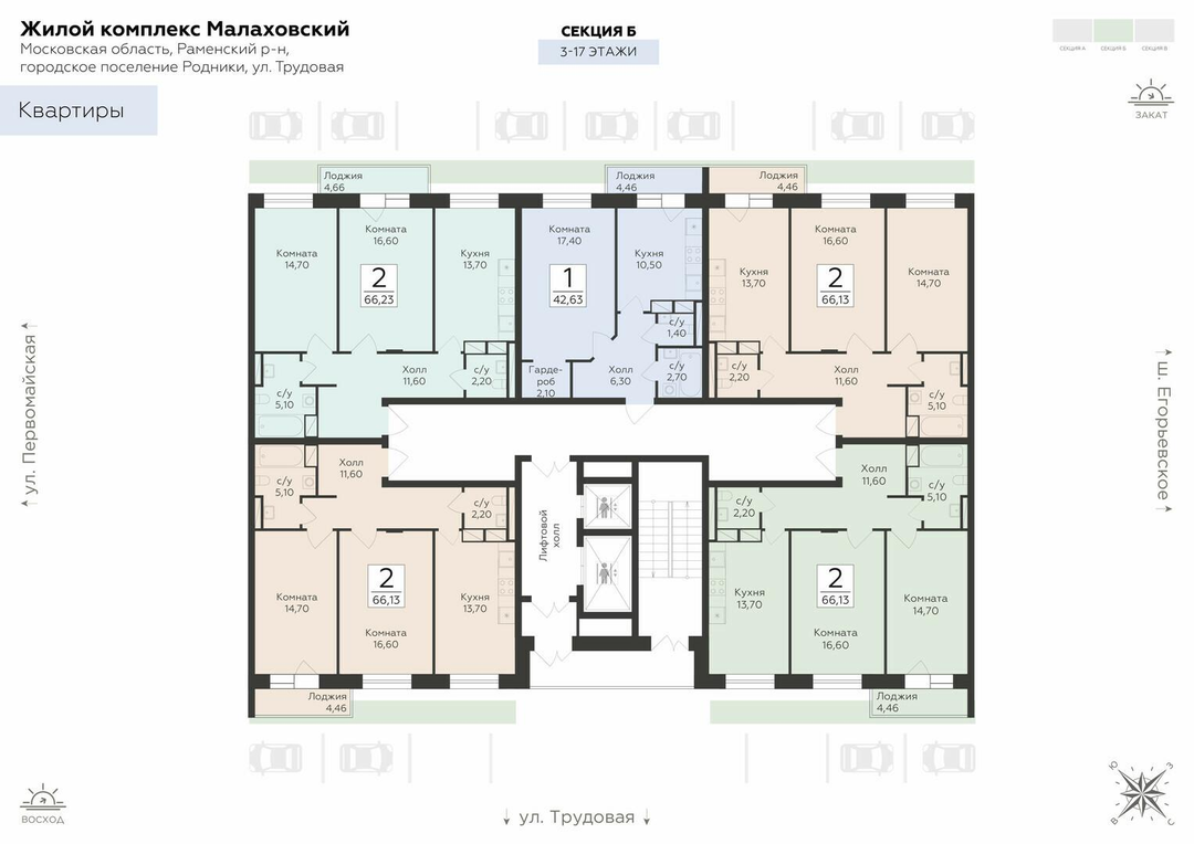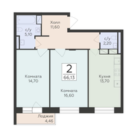 2-к. квартира, 66 м²