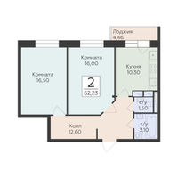 2-к. квартира, 62 м²