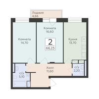 2-к. квартира, 66 м²