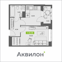 1-к. квартира, 32 м²