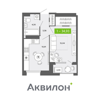 1-к. квартира, 34 м²