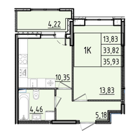 1-к. квартира, 35 м²