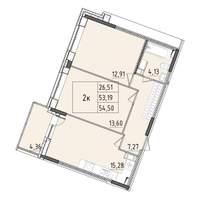 • Общая площадь 54 м²