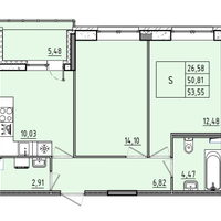 2-к. квартира, 53 м²