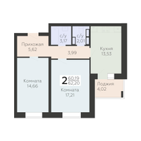 2-к. квартира, 62 м²