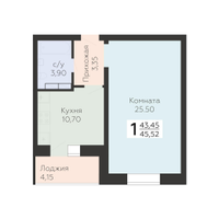1-к. квартира, 45 м²