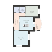 2-к. квартира, 64 м²