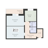 2-к. квартира, 65 м²