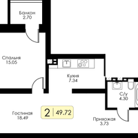 1-к. квартира, 49 м²